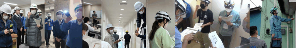 実際の建物 または バーチャル空間に再現した建物を使用して、設計図書の見方から現地調査の方法や報告書作成等を行う研修です。
