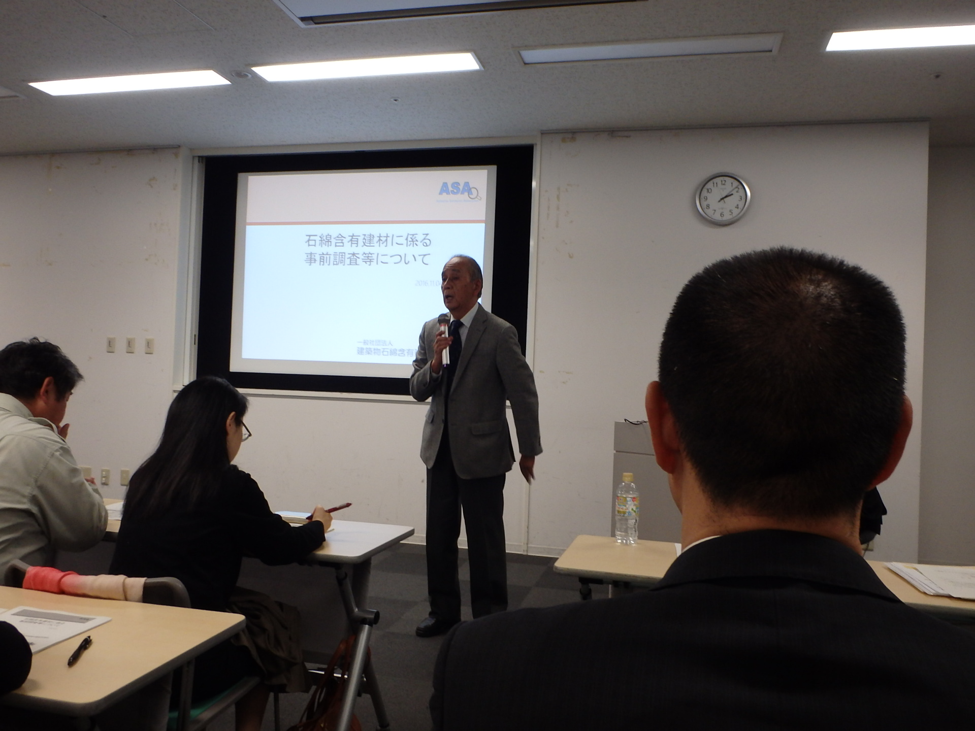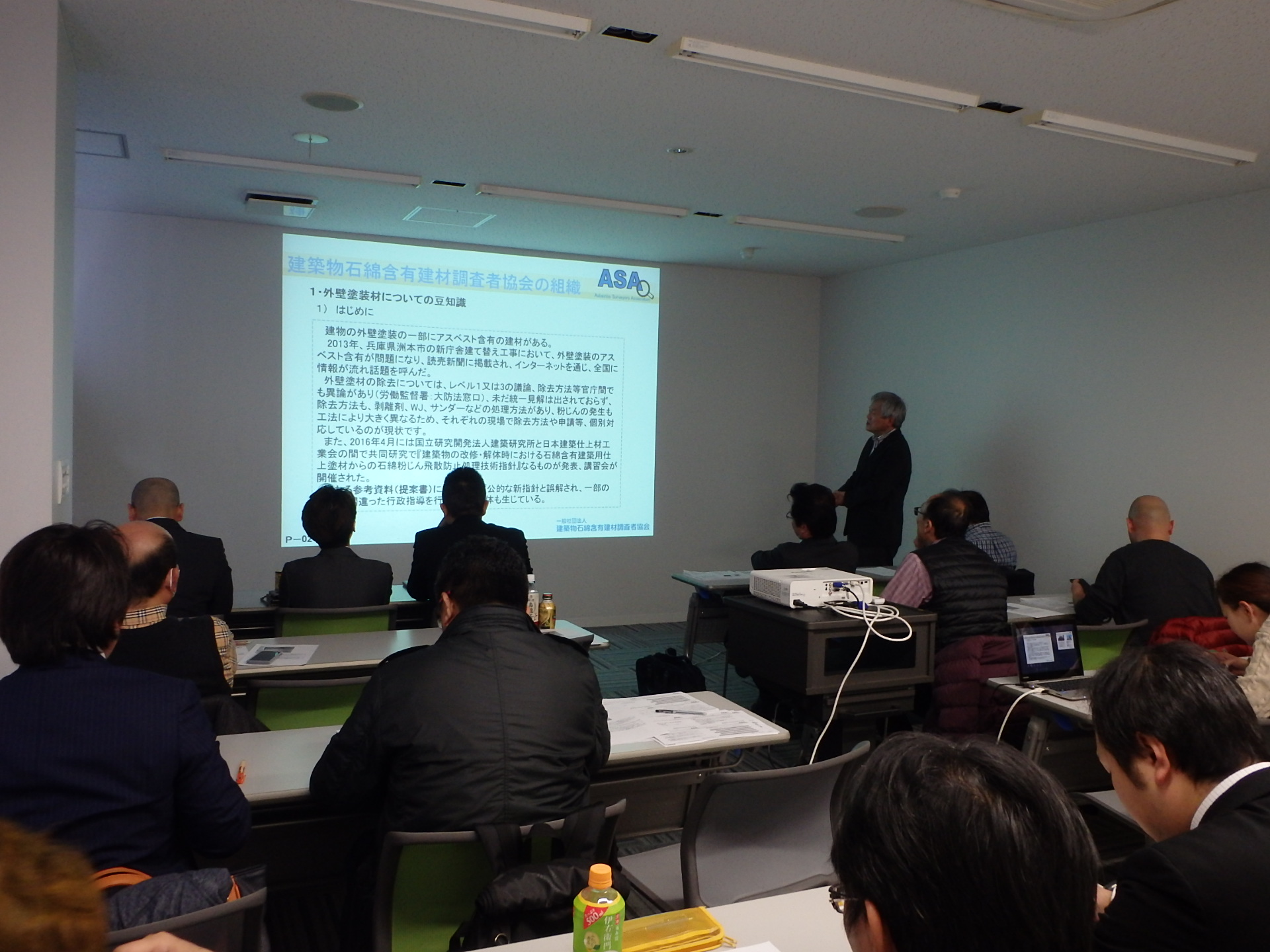 - 千葉県アスベスト問題対策会議主催のアスベスト問題対策研修会に、落合理事が講師として参加しました。演題は「石綿含有建材に係る事前調査等について」