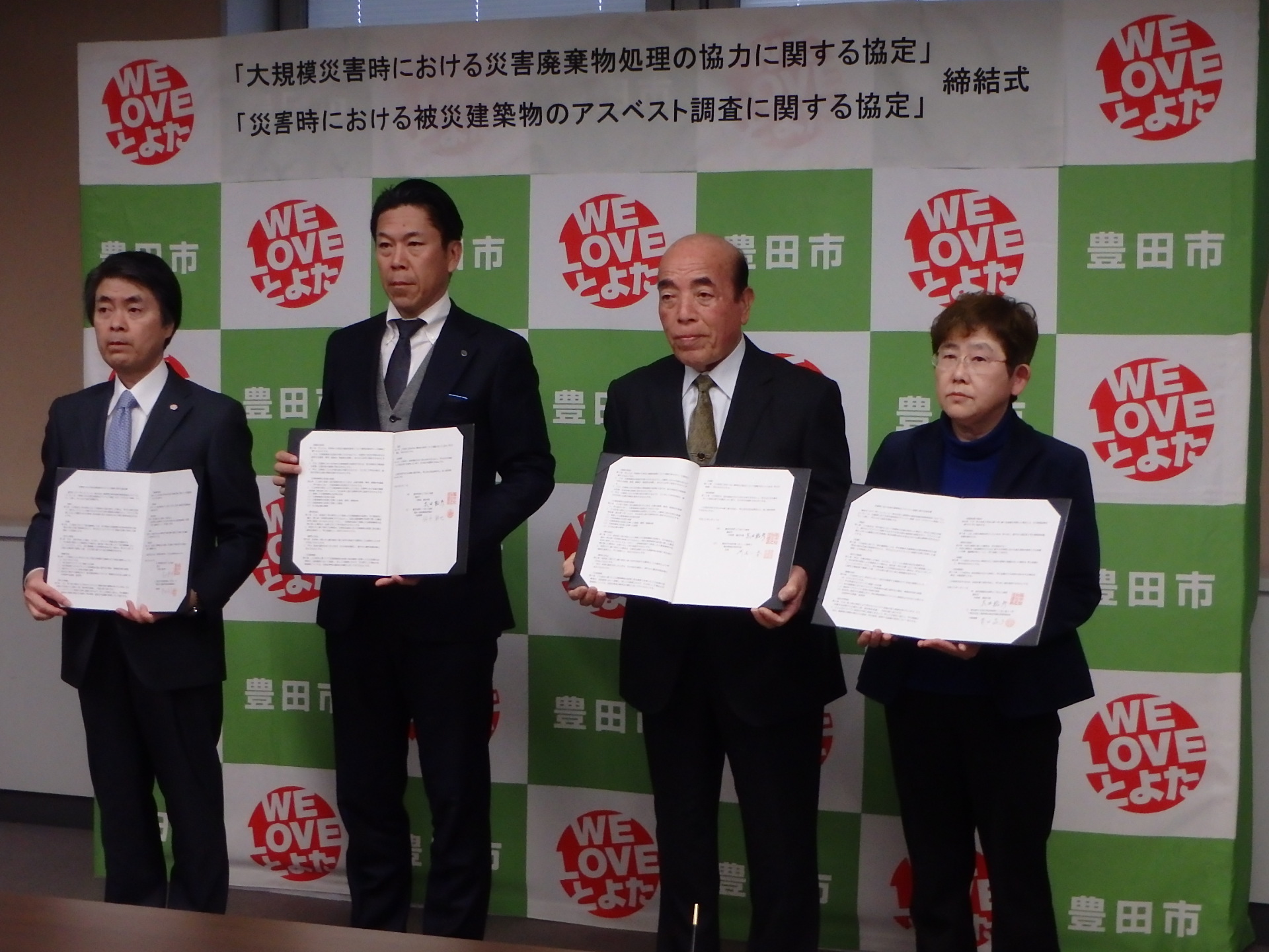 - 「災害時における被災建築物のアスベスト調査に関する協定」を愛知県豊田市と締結しました。豊田市では阪神大震災の発災日である1月17日を「とよた防災とボランティアの日」としており、この日に協会では最初となる災害時協定締結となりました。これを機に全国展開することを目指しています。